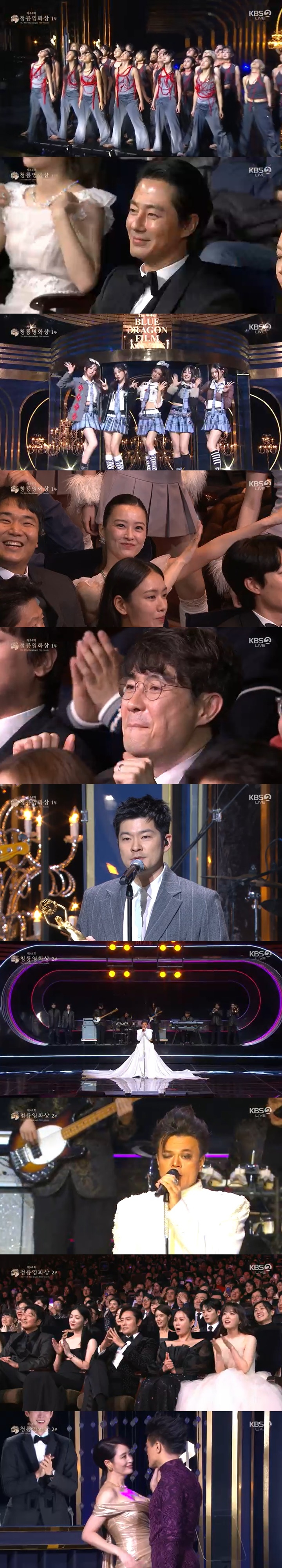 이날 원밀리언이 오프닝 무대를 장식했고, 뉴진스가 축하무대에 올라 눈길을 끌었다. 하니가 "혜인이 안 보이는데? Where are u?"라고 묻자 혜인은 "저 지금 여기! 조인성 배우님 옆이에요"라고 문자하며 무대에 올랐다. 뉴진스는 'ETA'와 'Super Shy' 퍼포먼스를 선보였고, 고민시, 조인성, 박정민, 도경수, 정수정이 무대를 즐기는 모습을 전했다. 정유미도 'Super Shy' 춤을 따라추며 영화제를 즐겼다. '밀수' OST에 참여한 장기하도 축하공연을 펼치며 모든 배우를 일으켜세웠고, 김완선, 박진영이 축하공연을 장식했다.