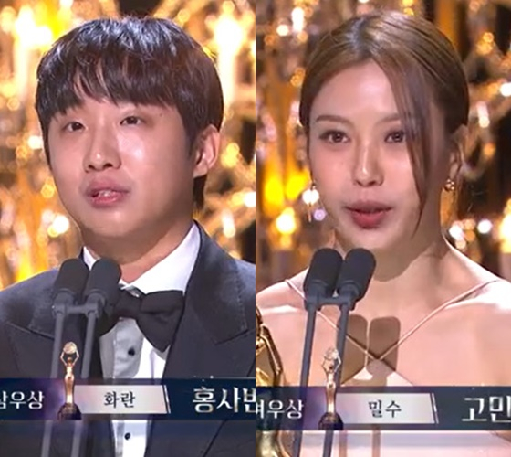 이날 '화란' 홍사빈, '밀수' 고민시가 청룡영화상 남녀신인상을 받았다.