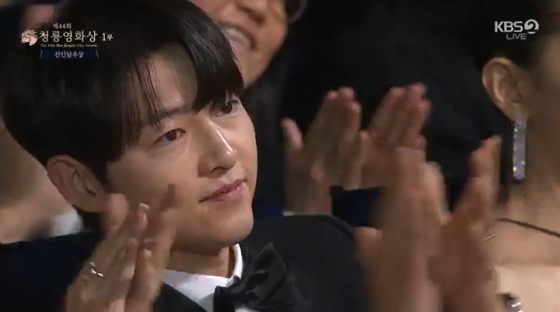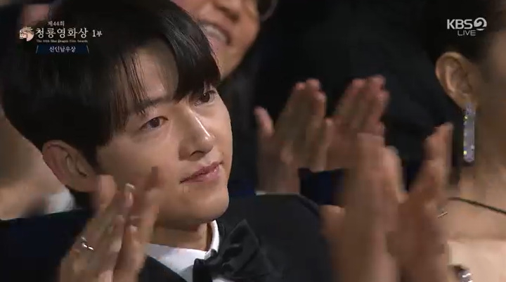 이어 "우연치 않게 모 회식에서 한 선배님께서 하신 얘길 들었다. '화란'이란 영화를 자기가 찍고 있는데 거기 나오는 신인 친구가 기특하다고 얘기해 주신 송중기 선배님과 이 영광 함께 나누고 싶다"라고 전했다. 송중기도 흐뭇해하는 미소로 화답했고, 비비는 눈물을 보였다.