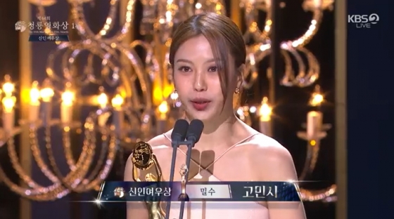 고민시는 "제가 생각을 정말 못하고 왔다"라며 떨리는 모습을 보였고 "제가 '밀수'란 영화로 올 한해 처음 해보는 게 많았고 ('밀수'가) 소중한 작품이다. 류승완 감독님 감사하고 외유내강 식구분들 너무 감사하다. 조인성 오빠께서 어느날 이런 말씀을 해주신 게 기억에 남는다. '우리 밀수란 영화에서 김혜수 선배와 염정화 선배는 정말 공기 같은 존재시다. 두 분이 존재하지 않았다면 우리 캐릭터는 숨 쉴 수 없었을 거다'라고 하셨다. 그 정도로 두 분께 너무 감사하다. 항상 함께한 해녀 언니들 보고 싶다"라고 말했다.