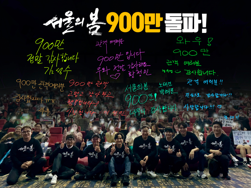 영화 '서울의 봄'은 영화관입장권 통합전산망 12월 18일 오전 11시 15분 기준 누적 관객 수 900만 185명을 기록했다. 이는 '아바타: 물의 길'(개봉 30일차), '광해: 왕이 된 남자'(개봉 31일차), '왕의 남자'(개봉 50일차) 등 역대 천만 관객을 동원한 영화들의 900만 돌파 시점을 뛰어넘은 기록으로, 천만 달성까지 얼마 남지 않은 '서울의 봄'의 흥행 추이에 한층 기대를 더한다.