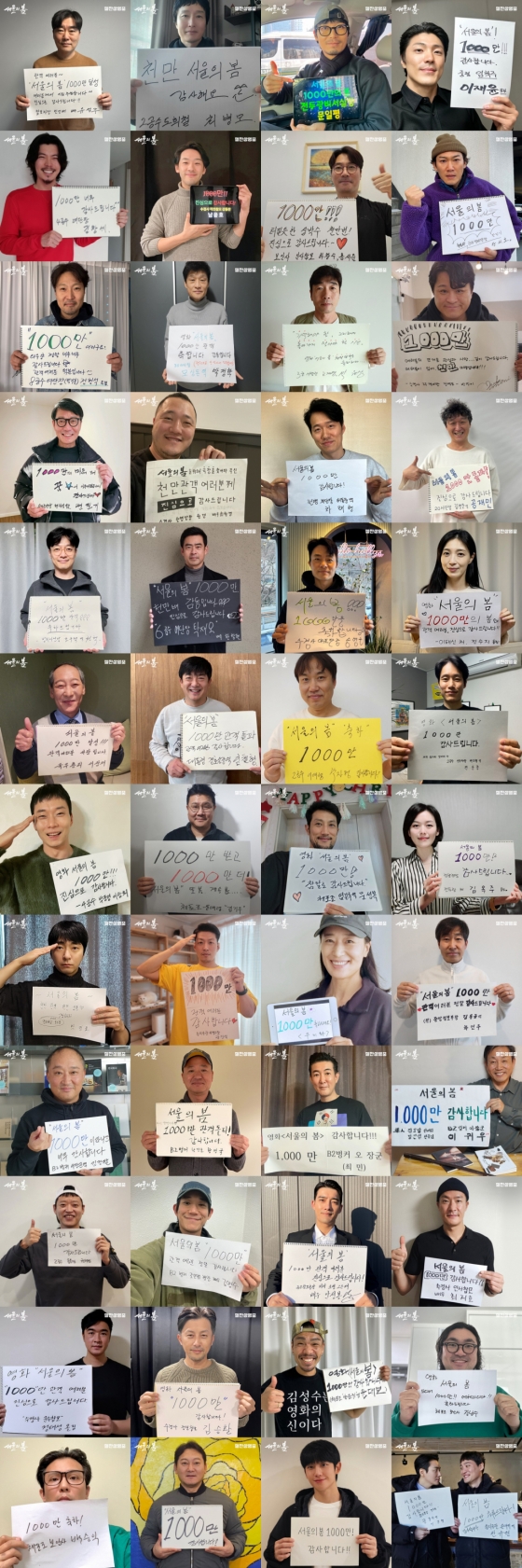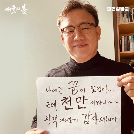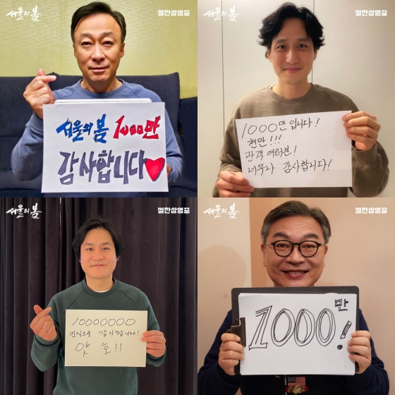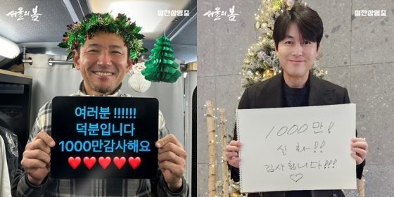 김성수 감독은 '비트', '태양은 없다'(1999), '무사'(2001), '아수라'(2016)에 이어 정우성과 함께 한 다섯 번째 작품인 '서울의 봄'으로 첫 '첫만 감독' 타이틀을 얻게 됐다. '서울의 봄'에서 수도 서울을 지키기 위해 고군분투하는 수도경비사령관 이태신 역을 맡아 열연한 정우성도 1994년 데뷔 이래 처음으로 '천만 배우' 반열에 올랐다. 이에 정우성은 "1000만 실화. 감사합니다"라고 친필 소감을 남겼다.
