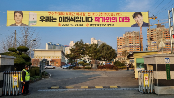 남도 끝자락 장흥군에 있는 향원중학교는 학생수가 220명의 작은 학교다. 교문에는 행사 일주일 전부터 구수환 감독의 강연을 알리는 플래카드가 걸려 있고 학생들의 사전 질문지도 100여개가 넘는다.