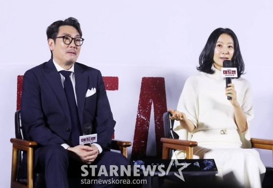 19일 오전 서울 성동구 메가박스 성수에서 영화 '데드맨' 제작보고회가 개최된 가운데, 하준원 감독과 조진웅, 김희애, 이수경 등이 참석했다.