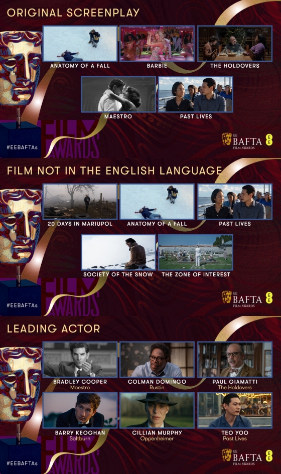 18일(현지기준) 영국영화TV예술아카데미(BAFTA)가 영국 아카데미상으로 불리는 BAFTA상 후보를 발표한 가운데 '패스트 라이브즈'가 각본상, 남우주연상(유태오), 비영어권작품상 등 3개 부문 후보에 오르는 쾌거를 이뤘다.