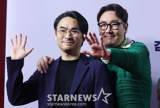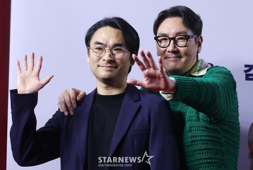하준원 감독, 배우 조진웅이 6일 오후 서울 강남구 삼성동 메가막스 코엑스에서 진행된 영화 '데드맨' VIP 시사회에 참석해 포즈를 취하고 있다.