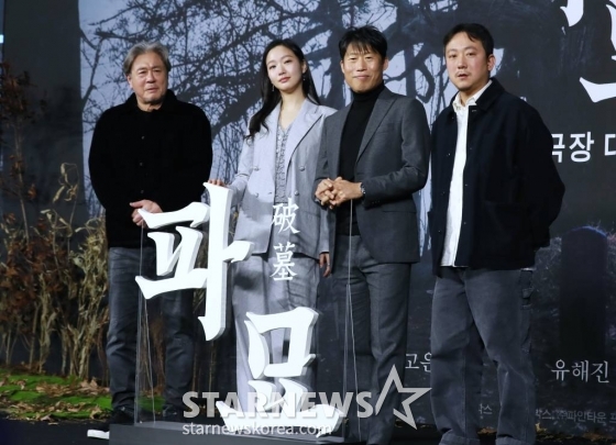 20일 서울시 강남구 메가박스 코엑스에서 영화 '파묘'(감독 장재현)의 언론배급시사회가 개최됐다. 이 자리에는 장재현 감독을 비롯해 배우 최민식, 김고은 유해진이 참석해 다양한 이야기를 나눴다. 현재 군 복무 중인 이도현은 영화 상영 전 영상을 통해 등장해 "'파묘' 잘 봐주시고, 입소문 내달라"라는 메시지를 전했다.