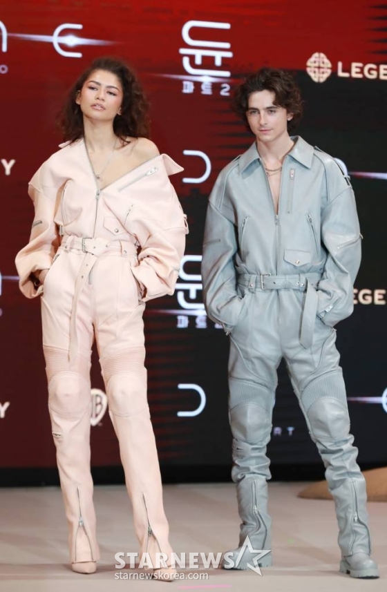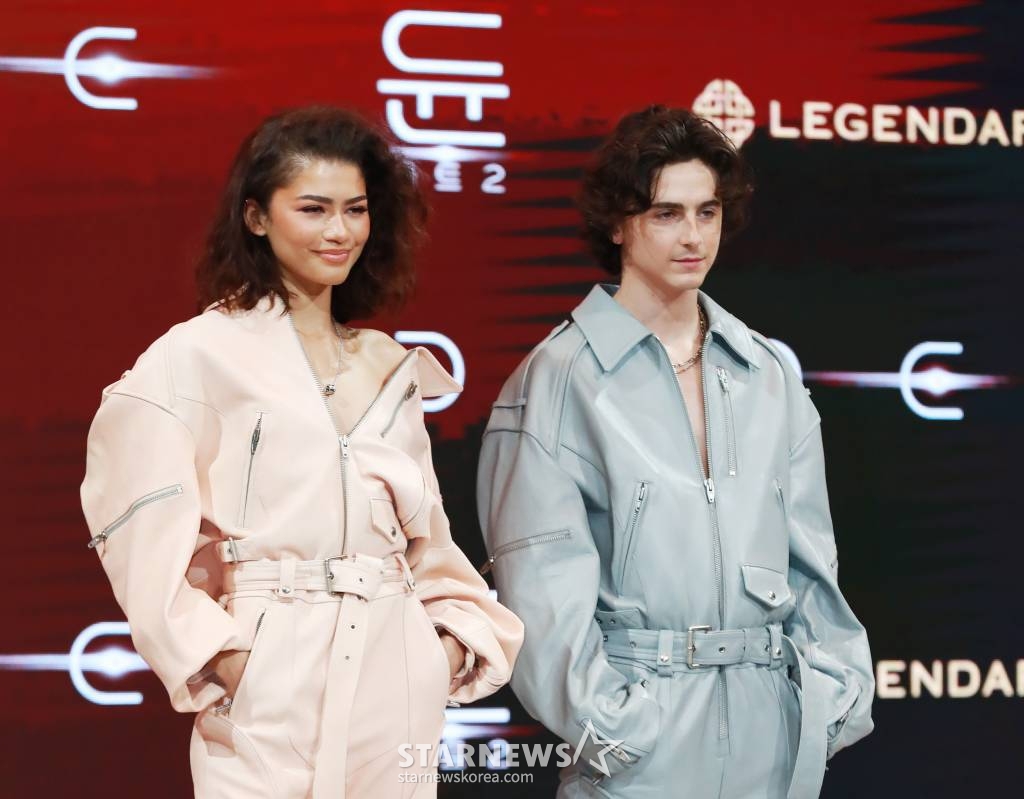 배우 티모시 샬라메와 젠데이아가 한국 디자이너 옷을 입고 내한 행사에 참석했다.