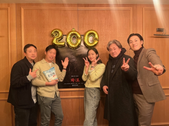200만 돌파 소식과 함께 감사의 마음을 전하는 '파묘' 팀의 훈훈한 인증 사진 또한 공개됐다. 연기부터 홍보까지 완벽한 팀플레이를 선보이고 있는 배우 최민식, 김고은, 유해진, 김재철, 그리고 연출의 장재현 감독이 함께하며 열정적인 에너지를 나누고 있다.