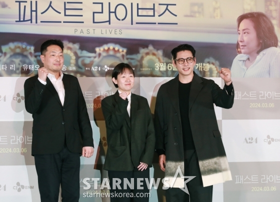 28일 서울시 용산구 CGV 용산아이파크몰에서 영화 '패스트 라이브즈'(감독 셀린 송)의 언론배급시사회가 개최됐다. 이 자리에는 셀린 송 감독, 배우 유태오, CJ ENM 고경범 영화사업부장이 참석해 다양한 이야기를 나눴다.