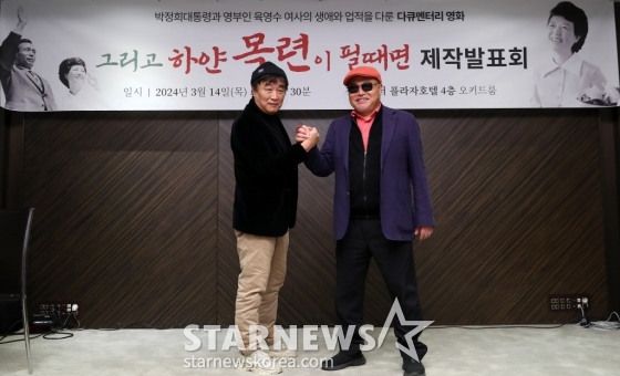 14일 오후 서울 중구 더 플라자 호텔 서울에서 박정희 대통령과 영부인 육영수 여사의 생애와 업적을 다룬 다큐멘터리 영화 '그리고 하얀 목련이 필때면' 제작발표회가 개최됐다.