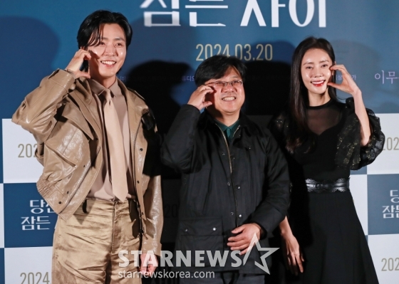 배우 이무생, 장윤현 감독, 배우 추자현이 14일 오후 서울 CGV용산이아파크몰에서 진행된 영화 '당신이 잠든 사이'(감독 장윤현) 언론시사회 및 기자간담회에 참석해 포즈를 취하고 있다.