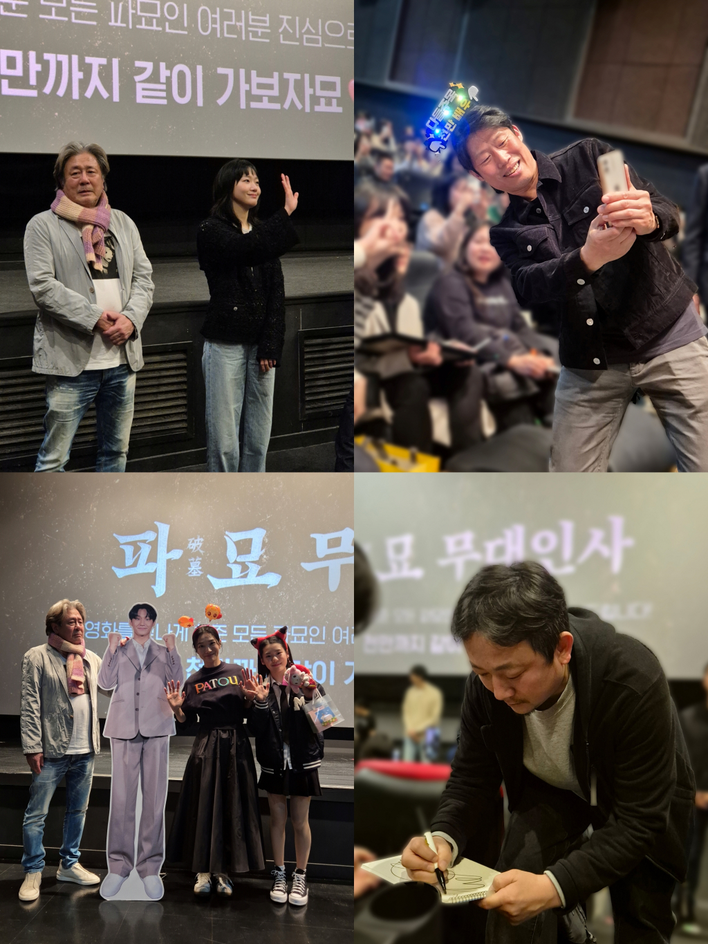 최민식은 "관객 여러분들께서 바로 '파묘'의 주인공이다"라며 깊은 감사의 인사를 전했다. 김고은은 "'파묘'를 사랑해주시는 팬분들 덕분에 하루하루 너무 행복하게 감사한 마음으로 살고 있다"라며 팬들을 향한 애정을 드러냈다. 유해진은 특유의 입담으로 감사하다는 말과 함께 이도현 등신대를 바라보며 "도현 씨도 마찬가지죠?"라는 재치 있는 멘트로 현장을 유쾌하게 채웠다.