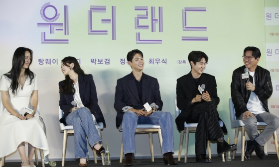 9일 서울시 용산구 CGV 용산아이파크몰에서 영화 '원더랜드'(감독 김태용)의 제작보고회가 개최됐다. 이 자리에는 김태용 감독, 탕웨이, 수지, 박보검, 최우식이 참석해 다양한 이야기를 나눴다.