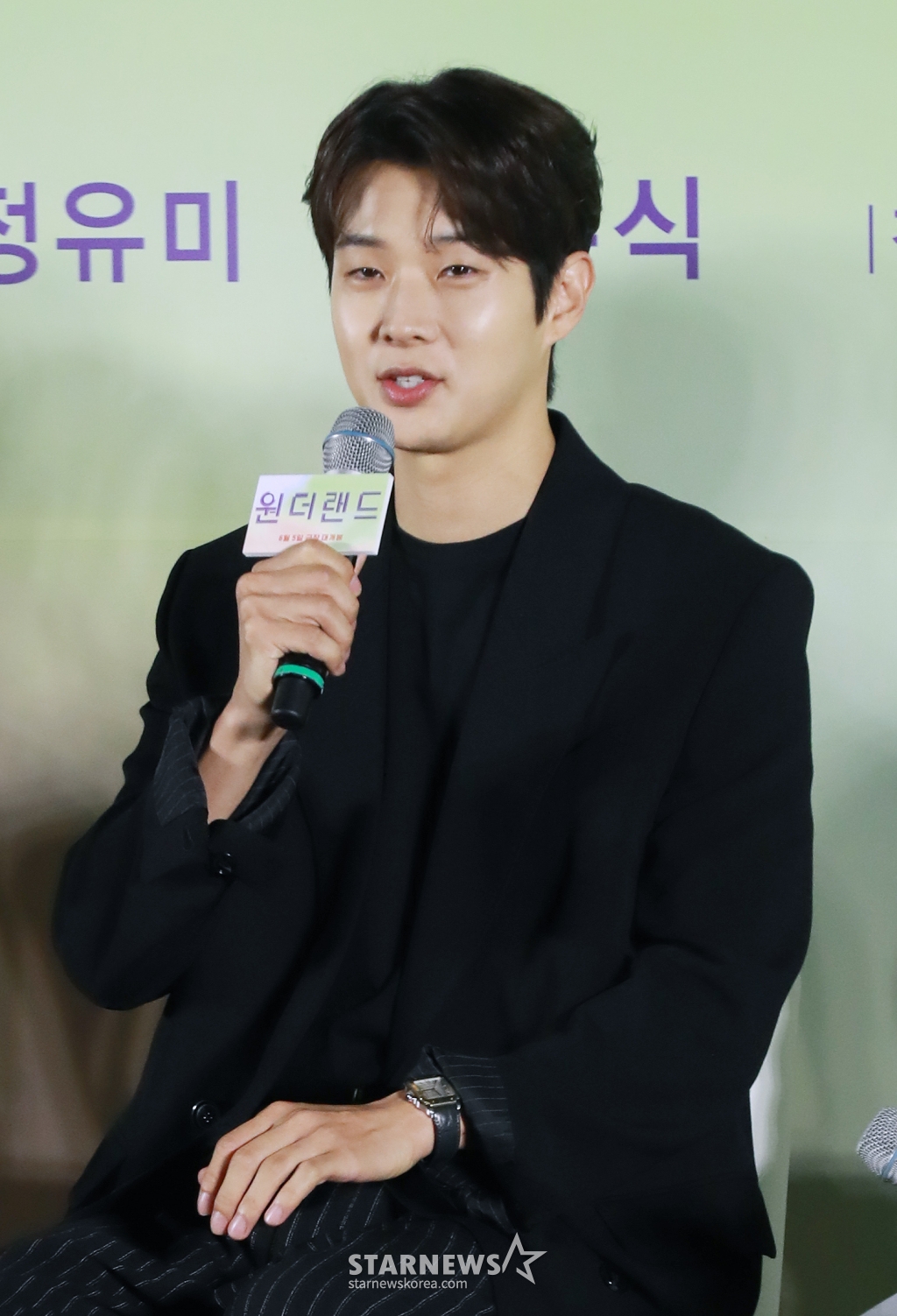 최우식은 "정유미 누나와 작품으로 함께 연기하게 된 건 처음이어서 긴장이 많이 됐다. 서로 친하고 잘 아는데 함께 연기를 하는 게 긴장되고, 더 잘해야 한다는 생각에 긴장을 많이 했다"며 "저희는 사실 다른 분들보다 고생을 덜 했다. 그린 스크린에만 있다 보니까 계속 상상하면서 누나와 호흡했다. 보이는 것은 그린 스크린이지만, 원더랜드 자체를 상상할 일이 더 많아서 연기는 어렵지 않았다"고 전했다.