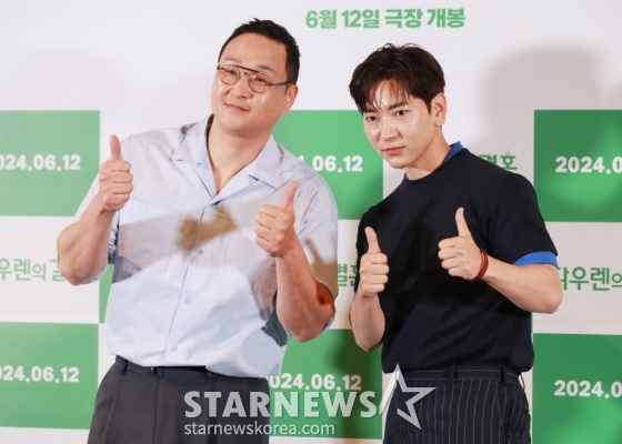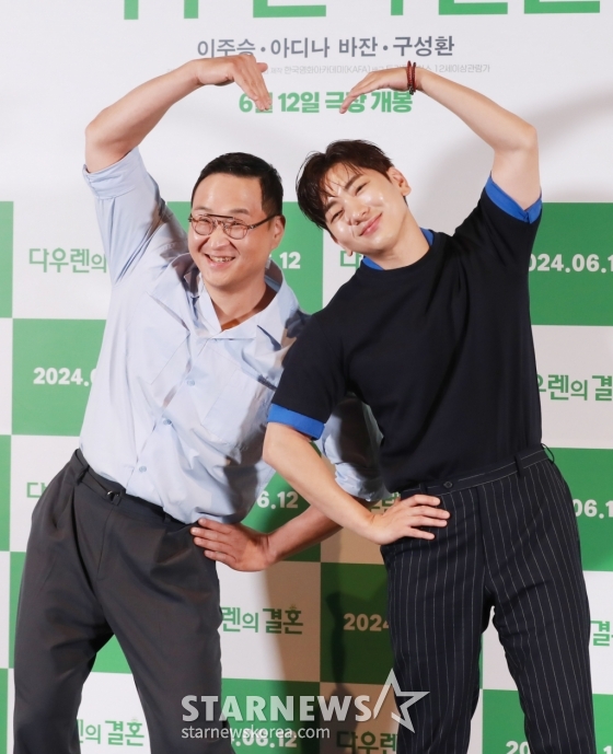 배우 구성환, 이주승이 28일 오후 서울 CGV용산아이파크몰에서 진행된 영화 '다우렌의 결혼'(감독 임찬익) 언론시사회 및 기자간담회에 참석해 포즈를 취하고 있다. /2024.05.28 /사진=이동훈