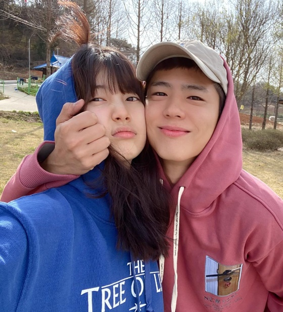 실제 연인을 연상하게 하는 사진도 큰 관심을 받았다. 박보검은 최근 수지와 가까이 밀착해 스킨십하는 사진을 올렸다. 두 사람은 편한 복장을 입은 채 편한 모습을 하고 있다.