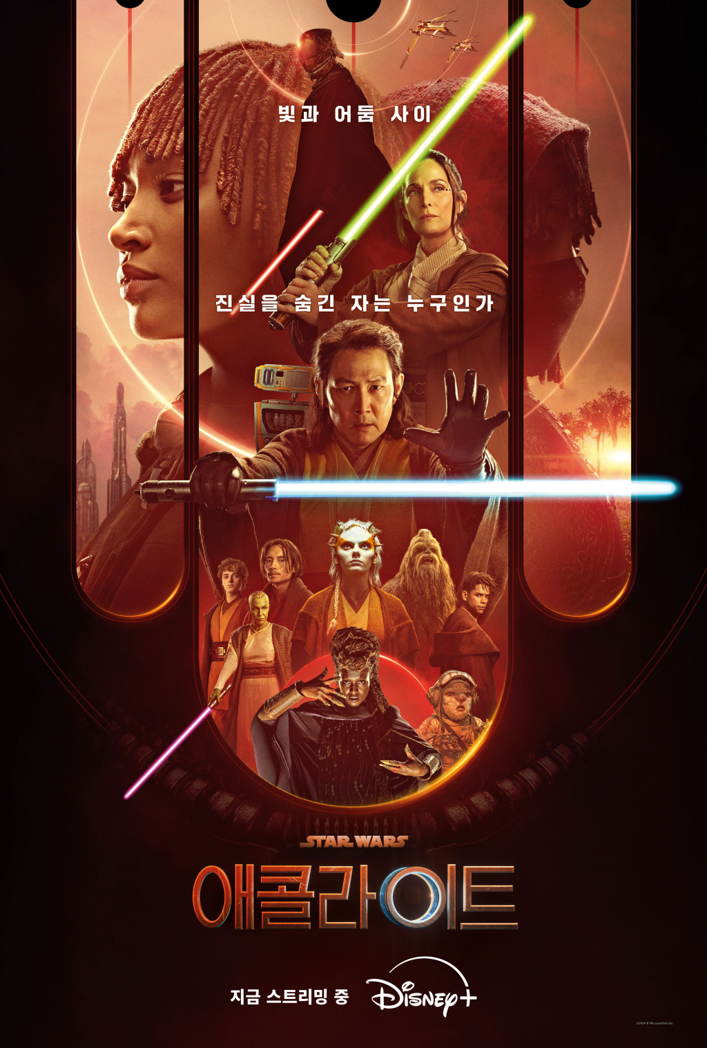 한편 '애콜라이트'는 평화를 수호하는 제다이 기사단의 황금기로 불리던 시대에 전대미문의 제다이 연쇄살인사건이 벌어지고, 그 뒤에 숨겨진 비밀과 진실 속 새롭게 떠오르는 어둠의 세력에 대한 이야기를 다룬 미스터리 액션 스릴러 로 매주 수요일 1회씩 총 8개의 에피소드가 공개된다.