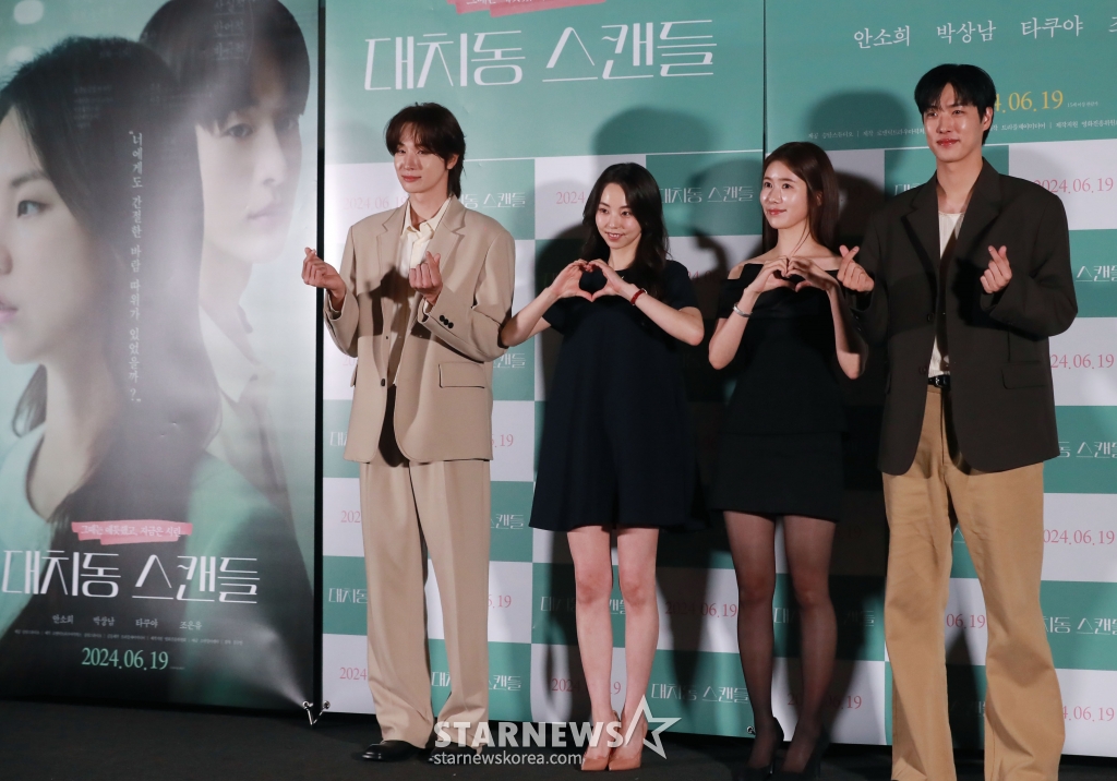 연예영화'대치동 스캔들' 사랑해 주세요[★포토]발행 : 2024.06.12 ・ 19:19이동훈 기자광고삭제배우 박상남, 안소희, 조은유, 타쿠야가 12일 오후 서울 CGV용산아이파크몰에서 진행된 영화 '대치동 스캔들'(감독 김수인) 언론시사회 및 기자간담회에 참석해 포즈를 취하고 있다./2024.06.12<저작권자 © 스타뉴스, 무단전재 및 재배포 금지>대치동스캔들안소희박상남타쿠야조은유대치동추천 기사이동훈 기자기자홈좋아요 연예-영화의 인기 급상승 뉴스연예-영화의 최신 뉴스