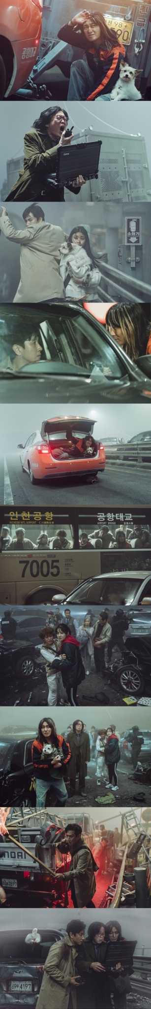 짙은 안개 속 통제불능의 군사용 실험견들의 무차별 공격이 시작되자 차 트렁크에 급히 뛰어들어 몸을 숨기는 조박과 딸을 지키기 위해 고군분투하는 정원, 공항버스에 피신해 상황을 지켜보는 사람들부터 한순간에 폐허가 된 공항대교를 벗어나려는 사람들까지. 살아남기 위해 극한의 사투를 벌이는 생존자들의 모습이 긴장감과 함께 극강의 몰입감을 선사한다.