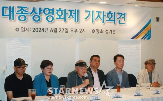 27일 서울시 종로구 세종문화회관에서 2024년 대종상영화제 기자회견이 개최됐다. 이날 한국영화인총연합회(영총) 양윤호 회장, 한국영화기술단체협의회 강대영 회장, 한국영화배우협회 이갑성 이사장, 대종상영화제 이장호 위원장, 한국시나리오작가협회 방순정 이사장, 한국영화촬영감독협회 김기태 이사장, 한국영화감독협회 김종진 이사장이 참석해 영총의 파산 및 회생, 60회 대종상영화제 개최와 관련한 입장을 밝혔다.