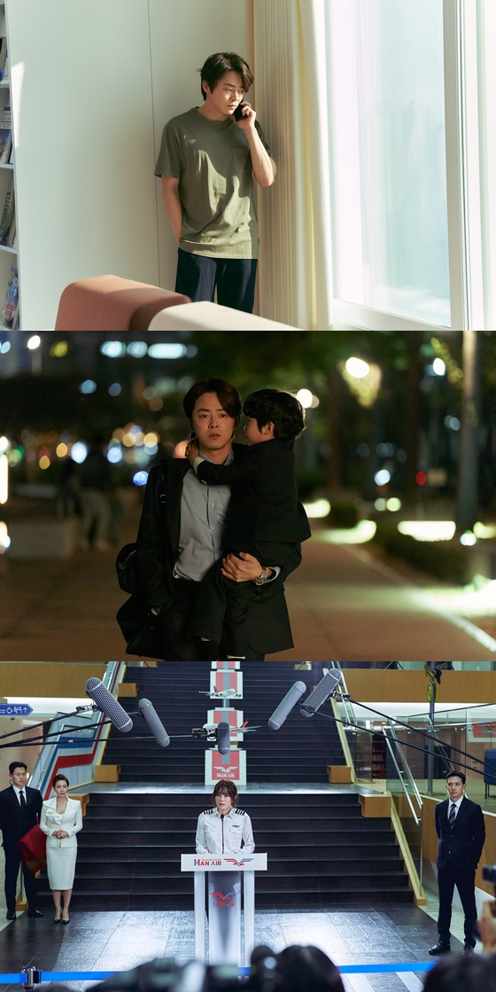 오늘(1일) 공개된 인생 난기류 스틸은 스타 파일럿 한정우가 겪게 되는 고난의 순간들을 모두 포착해 이목을 집중시킨다.