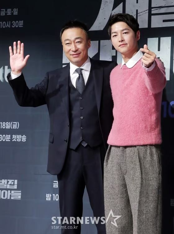 송중기의 이번 지원사격은 '핸섬가이즈' 주연 재필 역의 이성민을 위한 것. 두 사람은 지난 2022년 시청률 26.9%, 화제의 드라마 '재벌집 막내아들'에서 명품 앙상블을 빚어낸 바 있다. 종영 이후에도 변함없이 돈독한 우애를 이어가며 훈훈함을 안긴 이들이다. 이성민은 작년 서울드라마어워즈(SDA 2023)에서 한류드라마 부문 '연기자상'을 수상하며 송중기에게 영광을 돌리기도 했다.