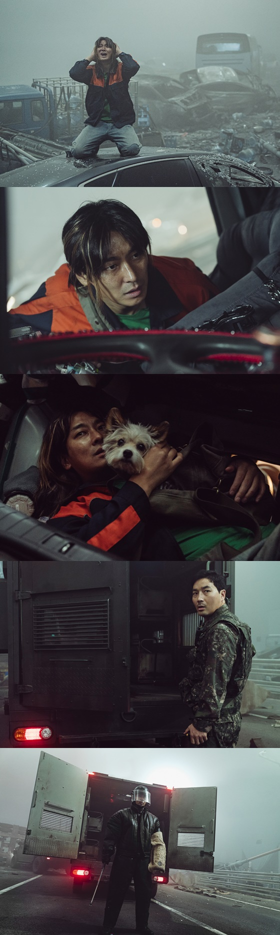 주지훈은 이번 작품으로 이제껏 본 적 없는 파격적인 스타일에 도전한다. 극 중 인생 한 방을 노리는 렉카 기사 조박 역을 맡은 주지훈. 그는 붕괴 직전의 공항대교 위에서 살아남기 위한 사투를 벌이는 생존자들 사이 '라푼젤'처럼 긴 머리를 휘날리며 영화에 유쾌한 활력을 불어넣을 예정이다.