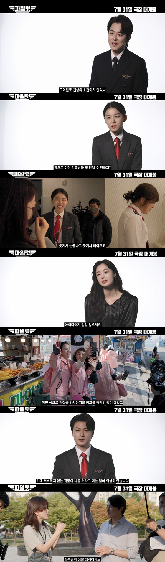 먼저 영상 시작과 동시에 다채로운 표정으로 '파일럿' 행의 출발을 알리는 조정석의 모습들이 이목을 집중시킨다. 조정석은 "'파일럿'은 신선하고 새롭고 도전해보고 싶은 영화였다"라고 전했다.
