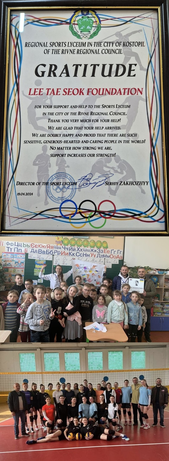 사단법인 이태석 재단 이사장인 구수환 감독이 공개한 사진엔 전쟁으로 부모를 잃은 열세 살 여자아이가 그린 수채화, 우크라이나 중부도시 리브니시의 체육회 감사장, 전쟁 고아의 밝은 모습이 담겼다.