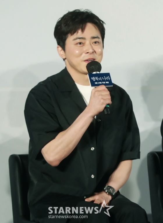 배우 조정석이 22일 오전 서울 롯데시네마 건대입구점에서 진행된 영화 '행복의 나라' 제작발표회에 참석해 질문에 답하고 있다. /2024.07.22 /사진=이동훈