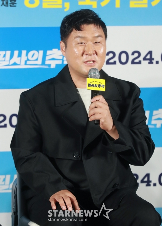 배우 윤경호가 23일 오전 서울 CGV용산아이파크몰에서 진행된 영화 '필사의 추격'(감독 김재훈) 제작발표회에 참석해 질문에 답하고 있다. /2024.07.23