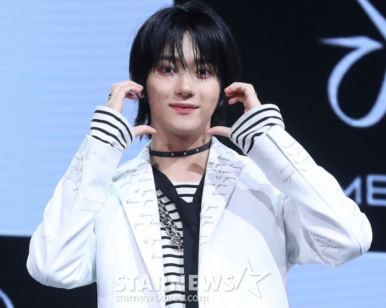 그룹 오메가엑스(OMEGA X) 정훈이 7일 오후 서울 광진구 예스24 라이브홀에서 진행된 세 번째 미니앨범 'iykyk(if you know, you know)'(이프 유 노, 유 노) 발매 기념 쇼케이스에 참석해 포즈를 취하고 있다. 오메가엑스의 이번 앨범 타이틀 'JUNK FOOD(정크 푸드)'는 불안정한 느낌의 신스와 베이스가 혼란스러운 분위기를 자아내는 트랩 장르의 힙합곡이다. 2023.11.07 /사진=김창현