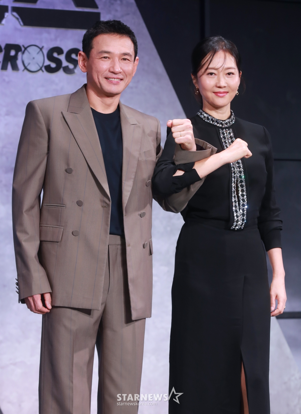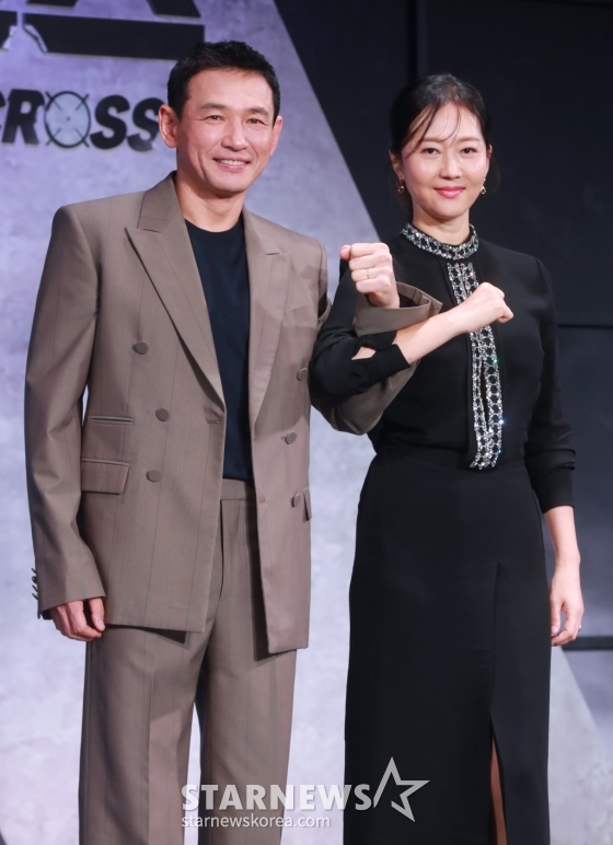 이어 '크로스'에 대해서는 "서로 하나도 안 맞는 부부가 둘이 하나 되는 영화다. 둘이 하나가 될 때 통쾌한 액션이, 둘이 어긋날 때 유쾌한 코미디가 나온다"며 "제가 결혼할 때 주례 선생님이 '연애는 서로 마주보는 것이고, 결혼은 같은 곳을 보며 걸어가는 것'이라는 말씀을 해주셨는데 의문이 들었다. '같은 곳을 보며 걸어가면 언제 마주보나' 하는 생각이 들어서 세월이 흐른 다음에 내 옆 사람을 봤을 때 또 다른 사람처럼 느껴지면 어떨까 생각했고, 시나리오로 해소해 보고 싶었다"고 밝혔다.