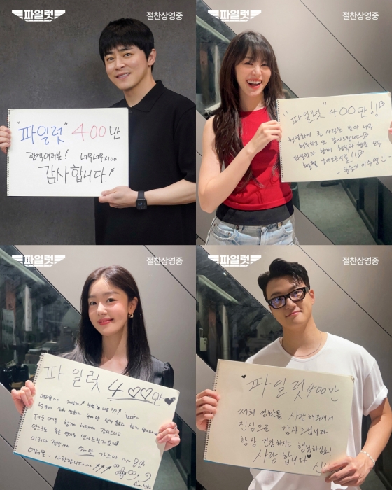 한편 400만 관객을 돌파한 놀라운 흥행 성적에 '파일럿'의 주역들이 영화를 사랑하고 무한 응원을 보내준 관객들을 향한 감사 인사를 전했다. 조정석, 이주명, 한선화, 신승호 그리고 김한결 감독까지 파일럿즈 완전체가 손편지를 직접 작성해 인증샷을 보내온 것. 파격 변신 연기의 정점을 선보인 조정석은 "'파일럿' 400만 관객 여러분! 너무너무x100 감사합니다"라며 진심 어린 무한 감사 인사를 전했고, 이주명과 한선화, 신승호는 "첫 영화에 큰 사랑을 받아 너무 행복하고 또 감사드립니다", "덕분에 저희 영화가 400만 관객 분들과 함께 합니다. 더운 여름 함께 해주셔서 감사드리고 사랑합니다", "저희 영화를 사랑해주셔서 진심으로 감사드립니다. 항상 건강하시고 행복하세요"라고 전하며 '파일럿'을 찾아 준 팬들의 뜨거운 성원에 화답했다.