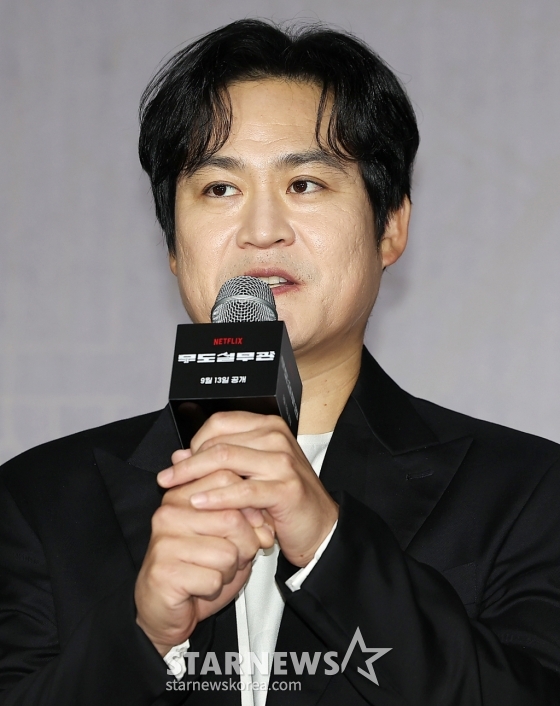 이날 김주환 감독은 "'무도실무관'을 준비할 때 그런 생각을 많이 했었다. 연민이 점점 더 없어지고 있고 누구를 위해 좋은 일을 할 수 있을까, 하는 질문으로 시작했다. 근데 이 작품을 통해 '사람은 누구를 위해 좋은 일을 할 수 있다'를 느끼게 됐다. 이런 주제를 담으려 했고 재밌게 전달드리기 위해 많은 노력을 했다. 액션, 유머 등 종합 패키지로 담아냈다"라고 자신 있게 내세웠다.
