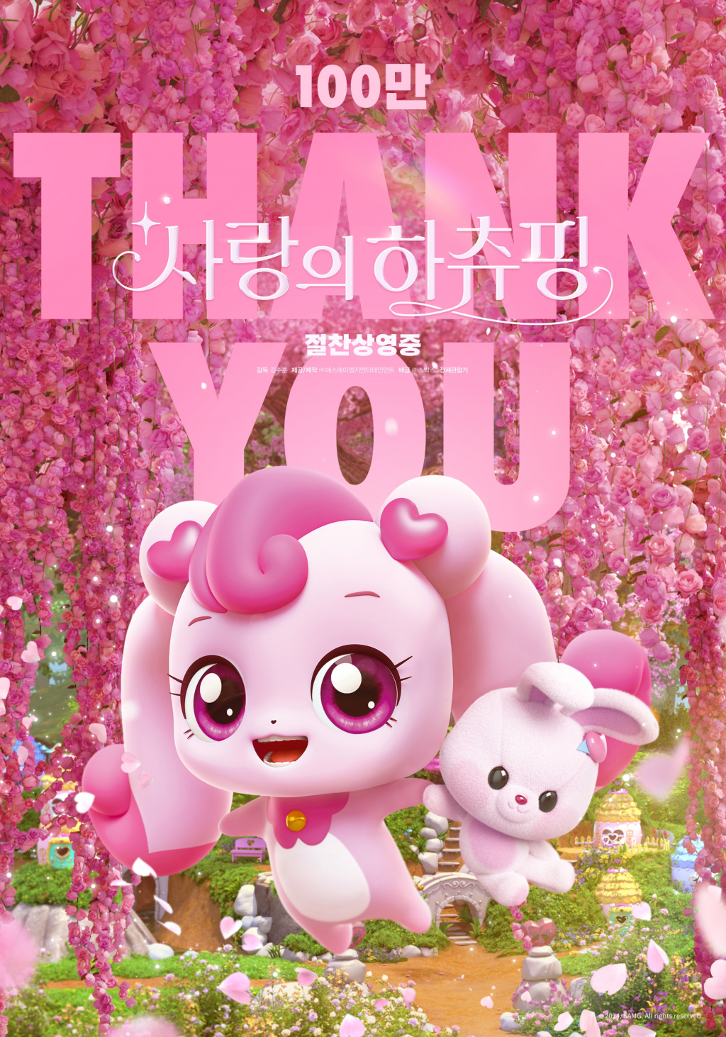 한편 '사랑의 하츄핑'은 이와 같은 성원을 보내준 관객들을 위해 100만 감사 포스터를 공개했다. 하츄핑이 홀로 외롭게 지냈던 마법의 숲을 배경으로 한 이번 포스터에는 더이상 외로워하거나 슬퍼하지 않는 하츄핑의 밝은 모습이 담겼다. 여기에 'THANK YOU' 문구도 담아내 아낌없는 사랑과 호응을 보내준 관객들에게 감사 인사를 전했다.