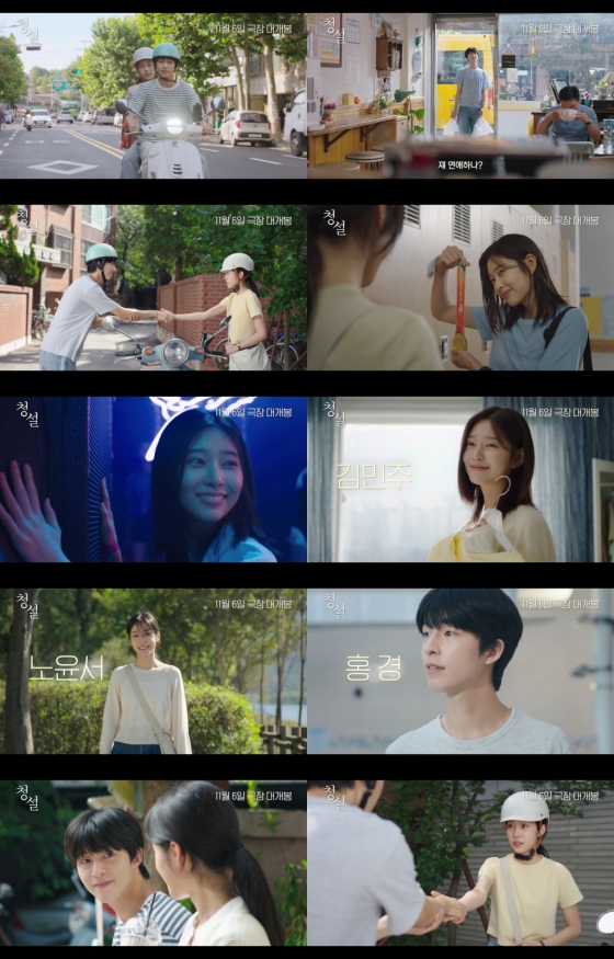한편 '청설'은 최근 가장 라이징 스타로 꼽히는 세 배우들의 만남만으로도 화제를 모으고 있다. 홍경이 사랑 앞에서는 직진 뿐인 용준 역을 맡았고, 노윤서가 남다른 생활력의 K-장녀 여름 역을 연기, 홍경과 함께 첫사랑의 설렘을 전할 예정이다. 여기에 김민주가 꿈을 향해 전진하는 수영선수 가을 역을 맡아 신선한 케미스트리를 보여줄 예정이다.