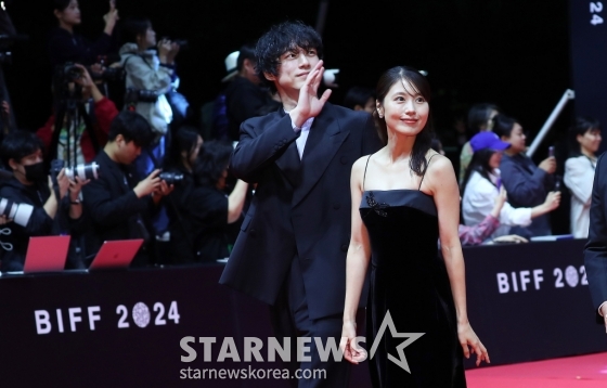 일본배우 사카구치 켄타로, 아리무라 카스미가 2일 오후 부산 해운대구 우동 영화의 전당에서 진행된 제29회 부산국제영화제(BIFF) 개막식에 참석하기 위해 레드카펫을 밟고 있다.
