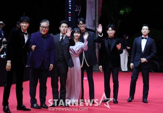 [부산=뉴시스] 하경민 기자 = 제29회 부산국제영화제가 개막식이 열린 2일 부산 해운대구 영화의전당에서 영화 '보통의 가독'의 감독과 배우들이 레드카펫을 지나고 있다. 올해 영화제는 커뮤니티비프 상영작 54편을 포함해 총 63개국의 영화 278편을 영화의전당 등 총 5개 극장 26개 상영관에서 상영한다. 2024.10.02. yulnetphoto@newsis.com /사진=하경민