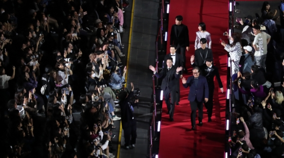 (부산=뉴스1) 윤일지 기자 = 2일 오후 부산 해운대구 영화의전당에서 열린 제29회 부산국제영화제(BIFF) 개막식에서 개막작 '전, 란'의 강동원, 차승원 등 배우들이 레드카펫을 밟으며 입장하고 있다. 올해 영화제에는 개막작인 김상만 감독의 넷플릭스 영화 '전, 란'을 비롯해 63개국 224편이 초청돼 7개 극장 28개 스크린에서 상영된다. 2024.10.2/뉴스1 Copyright (C) 뉴스1. All rights reserved. 무단 전재 및 재배포, AI학습 이용 금지. /사진=(부산=뉴스1) 윤일지 기자