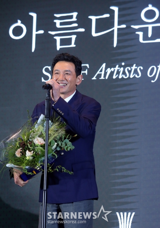 배우 황정민이 '아름다운 예술인상' 시상식에서 '영화예술인상'을 수상했다.