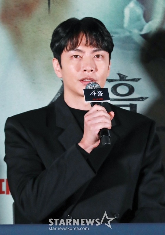 배우 이민기가 12일 오후 서울 CGV용산아이파크몰에서 진행된 영화 '사흘'(감독 현문섭) 언론배급시사회 및 기자간담회에 참석해 질문에 답하고 있다. /2024.11.12 /사진=이동훈 photoguy@