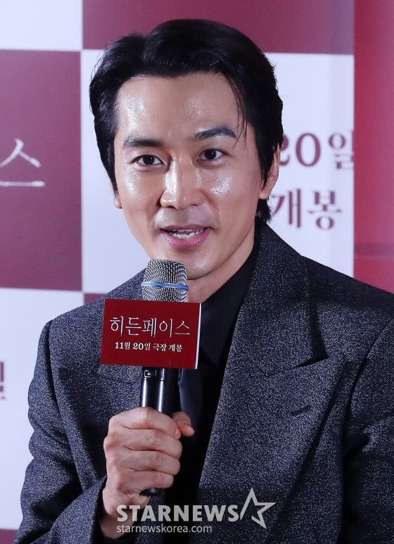 배우 송승헌이 13일 오후 서울 강남구 삼성동 코엑스 메가박스에서 진행된 영화 '히든페이스' 언론시사회 및 기자간담회에 참석해 인사말을 하고 있다. '히든페이스'는 한통의 영상편지만 남기고 사라진 약혼녀의 행방을 쫓던 한 남자가 그녀와 관련된 충격적인 비밀을 마주하게 되면서 벌어지는 미스터리 스릴러. 오는 20일 개봉. 2024.11.13 /사진=김창현 chmt@