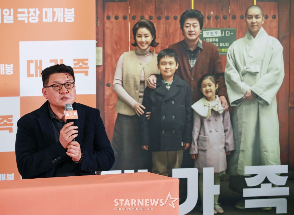 이날 양우석 감독은 '대가족'에 대해 "대한민국 사회에서 가족이 큰 화두라는 생각이 든다. 저도 짧지 않게 '가족이란?' 의미에 관한 고민을 해왔다. 아시다시피 지난 한 세대, 두 세대 동안 가족의 형태, 의미가 굉장히 변했는데도 불구하고 그런 면들이 작품으론 제대로 안 다뤄진 거 같아서 만들게 됐다. 또 가족을 구성하는 게 힘들게 된 현실과, 화목해지기 위해 우리 모두가 나서야 하지 않을까 하는 생각을 담았다"라고 기획 의도를 밝혔다.
