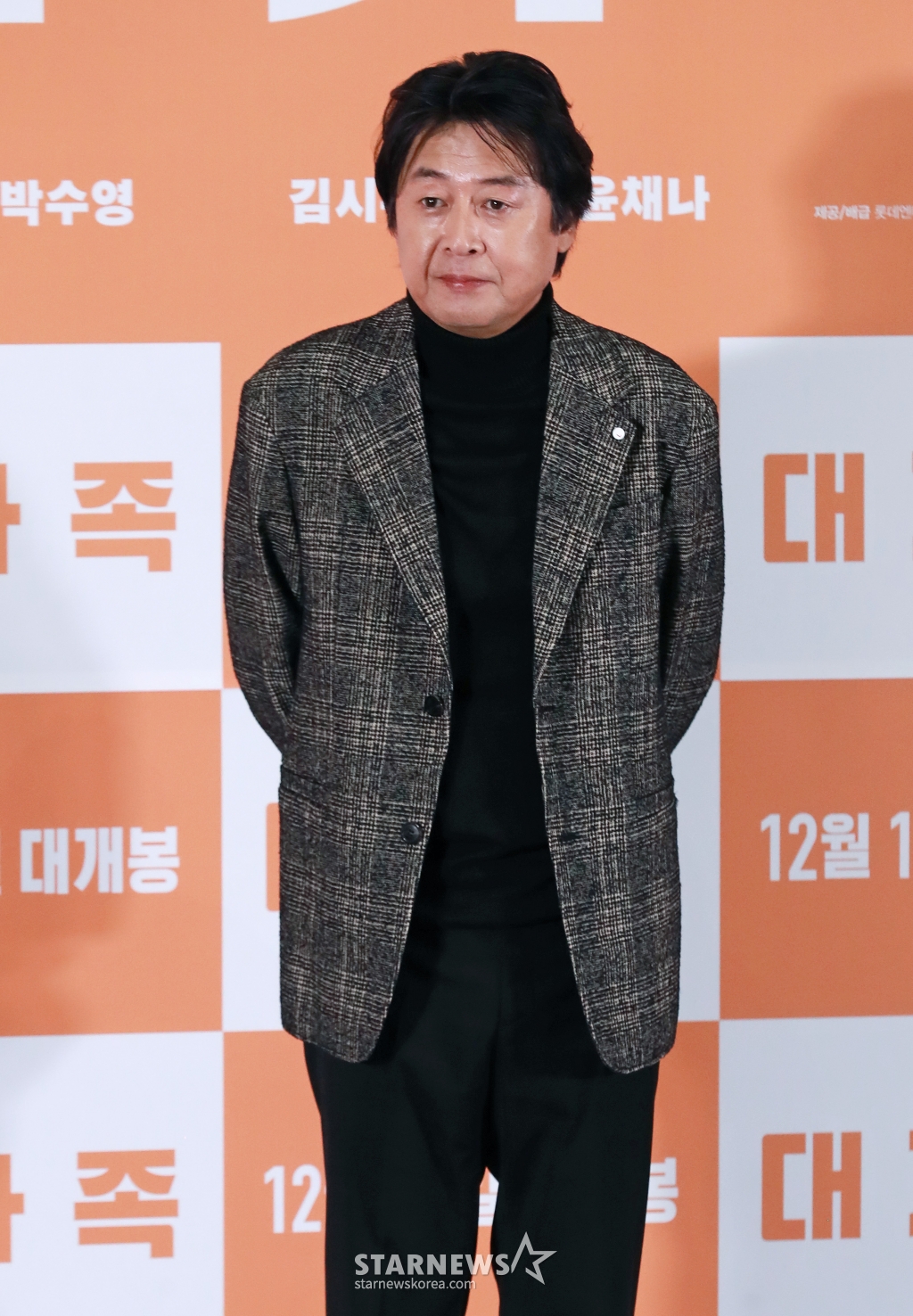 21일 오후 서울 송파구 롯데시네마 월드타워에선 영화 '대가족' 언론배급 시사회 및 기자간담회가 열렸다. 연출과 각본의 양우석 감독과 출연 배우 김윤석, 이승기, 박수영 등이 참석했다.