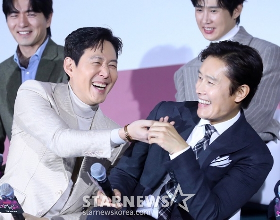 이병헌은 이정재와는 1997년 SBS 드라마 '백야' 이후 26년 만에 함께 작품에서 호흡했다. 이에 이병헌은 "맞다. 그때가 나 3살 때다"라고 농담했고 이정재는 이를 듣고 "3살때요?"라고 우쭈쭈 하는 자세로 장난을 치며 웃음을 자아냈다.