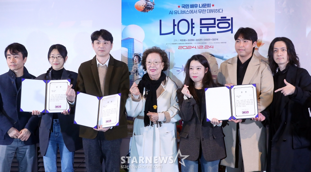 나문희에게 고마운 마음을 전한 박 대표는 "영화 선정 때 주안점을 둔 게 대개 AI 영화가 판타지인데 일상의 모습을 우선적으로 생각했다. 스타 배우가 등장하는 AI 영화는 최초라고 알고 있다. 저는 '안시성' 등 영화 제작을 평생 했던 사람인데 제 비전은 새로운 시대에 AI로 장편 영화를 만드는 날이 오길 꿈꾼다. 그럼 감독, 창작자들이 더 많은 영화를 만들 수 있지 않을까 싶다. 이 작은 걸음이 큰 결실이 될 거라고 본다. 벅찬 감정이 든다"고 말했다.