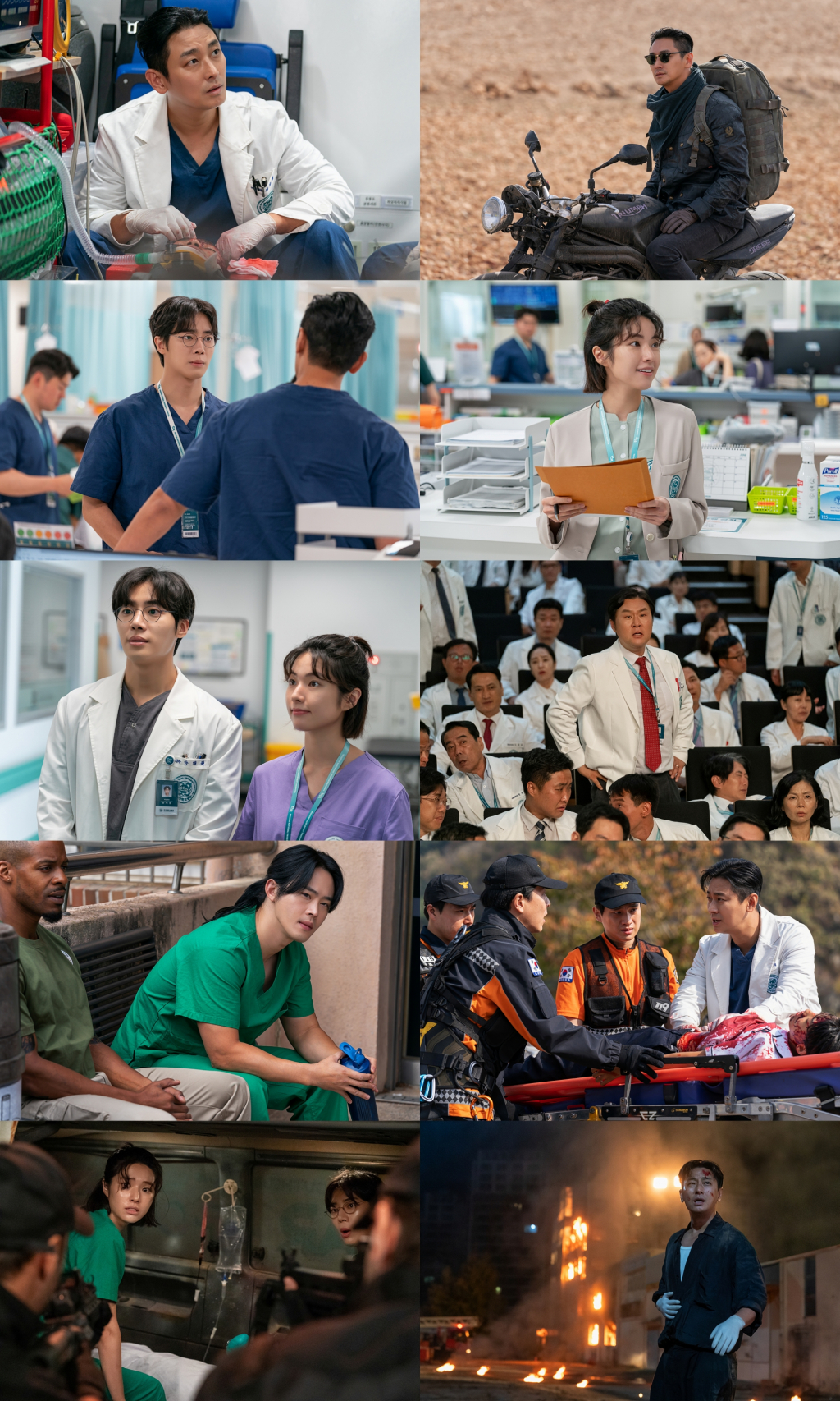 앞서 베일을 벗은 티저 포스터와 예고편이 화제를 모은 가운데, 이날 공개된 캐릭터 스틸은 '팀 중증'의 거침없는 활약을 기대케 한다. 먼저 불의에 굴하지 않는 천재 외과의사 백강혁의 독보적 아우라가 시선을 사로잡는다. 검게 그을린 거친 얼굴로 오토바이를 탄 백강혁. 사람을 살리기 위해서라면 전쟁터도 마다하지 않는 그의 범상치 않은 행보와 숨겨진 과거에 대한 궁금증을 높인다. 특히 위급 상황에서도 흔들리지 않는 냉정함과 자신감은 '신의 손' 천재 의사의 활약을 더욱 기대케 한다. 주지훈은 "백강혁은 실력과 지성을 모두 겸비한 거침없는 인물이다. 불의를 깨부숴가는 모습에 쾌감을 느꼈고, 속이 시원했다. 일종의 히어로물처럼 느껴졌다"라면서 그가 완성할 백강혁이란 인물에 기대 심리를 자극했다.