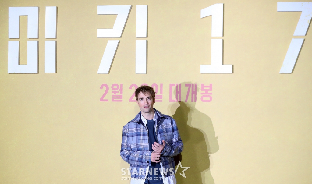할리우드 배우 로버트 패틴슨이 20일 오전 서울 용산구 아이파크몰 CGV에서 진행된 영화 '미키17' 기자간담회에 참석해 포즈를 취하고 있다.